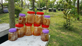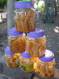待蜜裝滿並封蓋後再割取巢蜜,也有少部分沒封蓋但也是裝滿的。運輸途中也會有少量蜜流出在瓶裡。