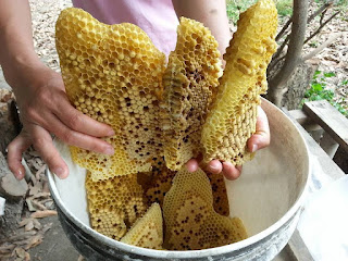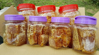 新巢沒取過蜜,新蜜裝滿蜂巢並封蓋後即割取巢蜜。