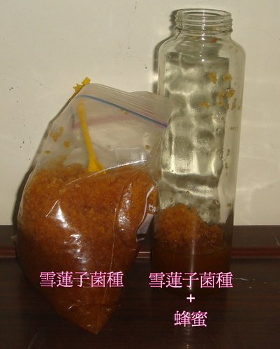 雪蓮子菌種+蜂蜜+黑糖 (可加入花粉一起發酵)