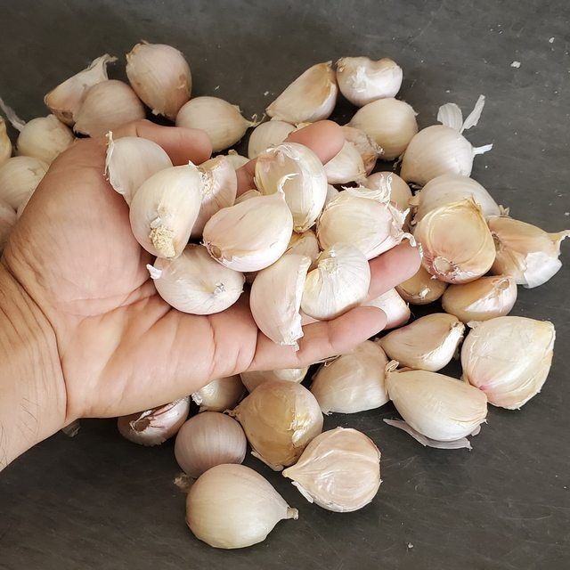 濕的蒜頭,會有少許泥土或蒜葉是正常的喔。