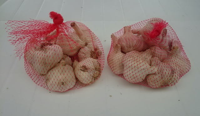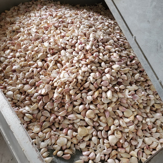 收到蒜頭後盡快將蒜頭取出吊起通風或分散平舖地面,以上很重要。
