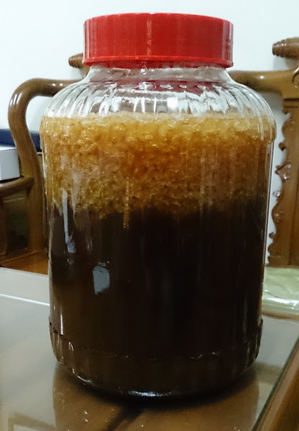 雪蓮子菌種+蜂蜜+黑糖+過濾水 發酵中...