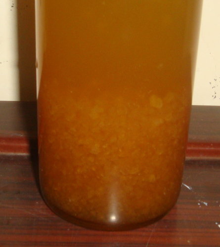 以過濾水將雪蓮子菌種洗淨備用,過濾水混合(蜂蜜+黑糖)攪拌溶解,加入洗淨的雪蓮菌,