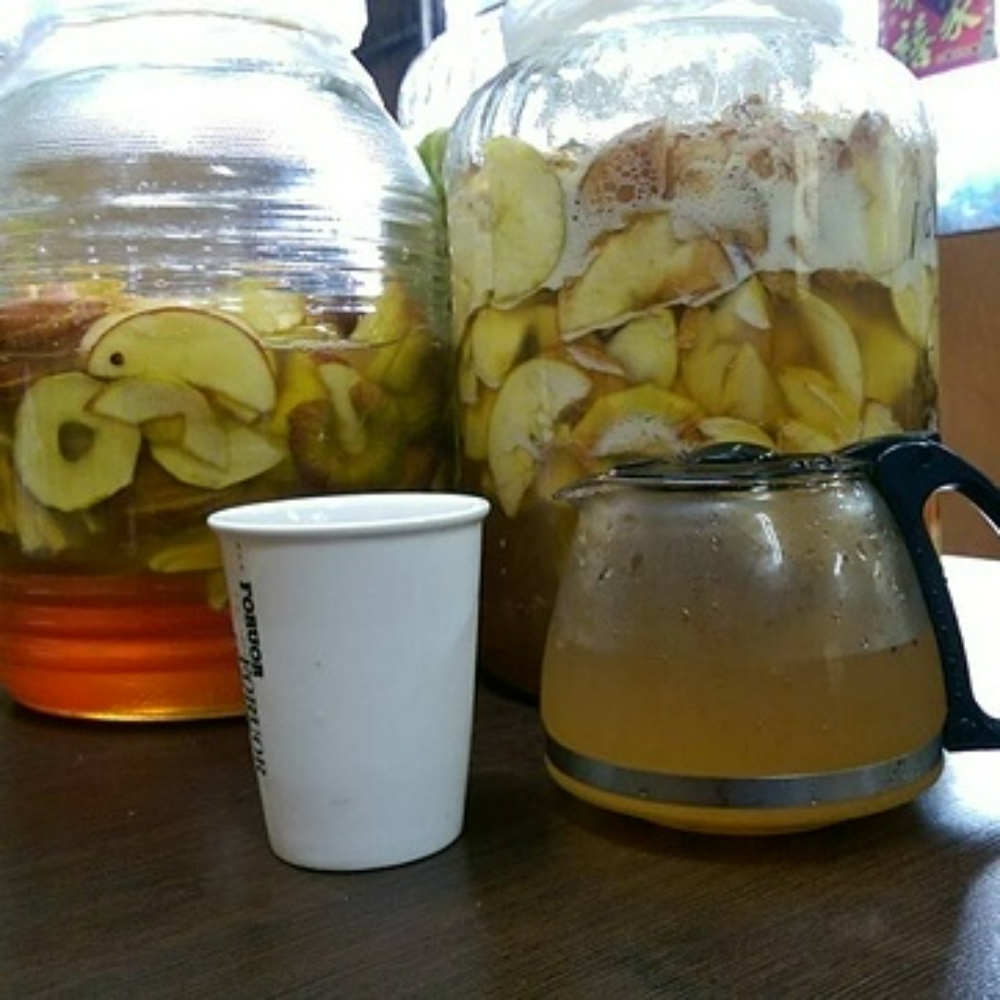 先讓蜂蜜與檸檬蘋果在發酵甕內能量交換, 蜂蜜的滲透壓會將檸檬蘋果酵素滲透出來, 活菌酵素液第二週再加入......